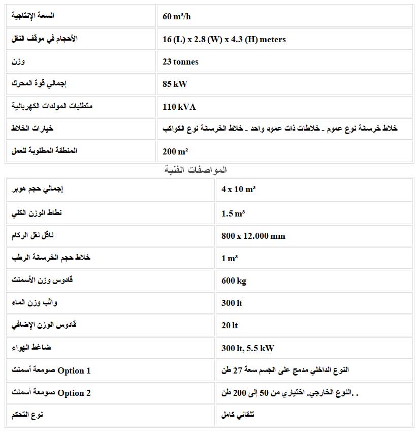 محطة خلط الخرسانة المتحركة 60م3 :