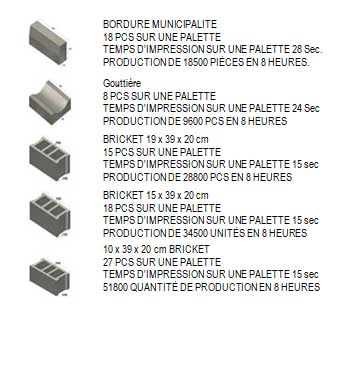 Pour commencer l’installation, ciment, agrégats, plomberie et eau, béton, compresseur à air comprimé d’une capacité minimale de 500 lt, chariot élévateur à fourche, godet, grue télescopique d’une capacité de levage d’au moins 10 tonnes, panneau électrique et de distribution avec puissance et les opérateurs seront prêts à utiliser l'équipement.
