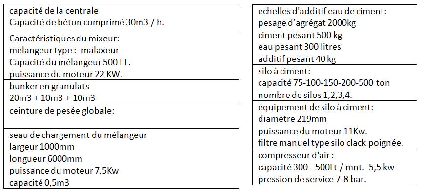 CARACTÉRISTIQUES TECHNIQUES DE LA CENTRALE A BÉTON NBS 30-K