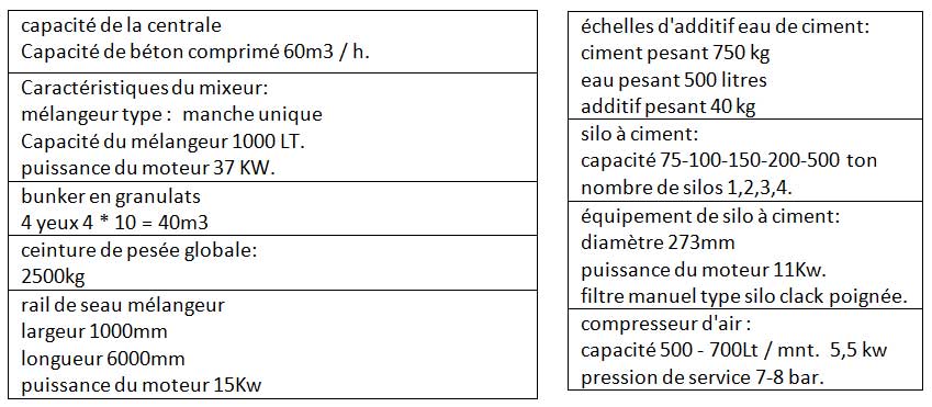 CARACTÉRISTIQUES TECHNIQUES DE LA CENTRALE A BÉTON NBS 60-K