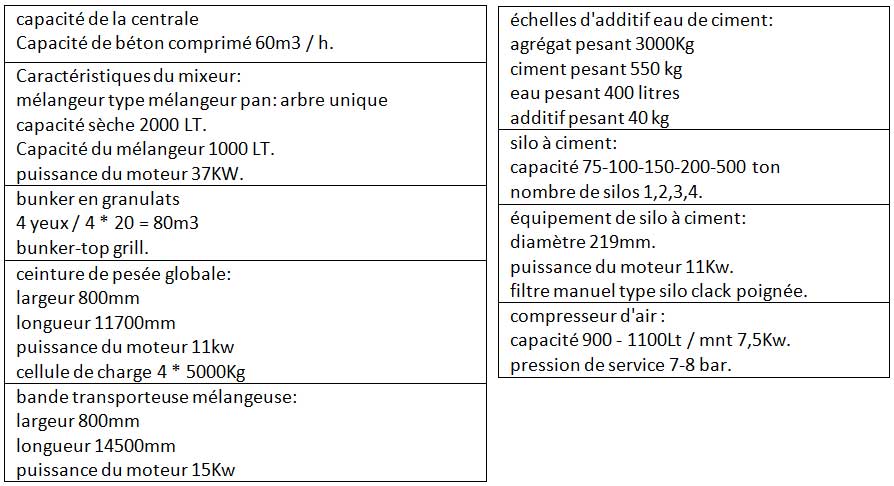 SPÉCIFICATIONS TECHNIQUES DES CENTRALES A BÉTON NBS 60-S