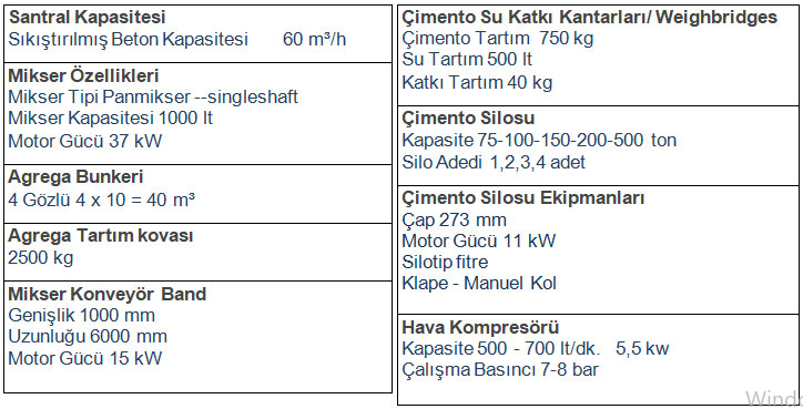 NBS 60-K BETON SANTRALİ TEKNİK ÖZELLİKLERİ