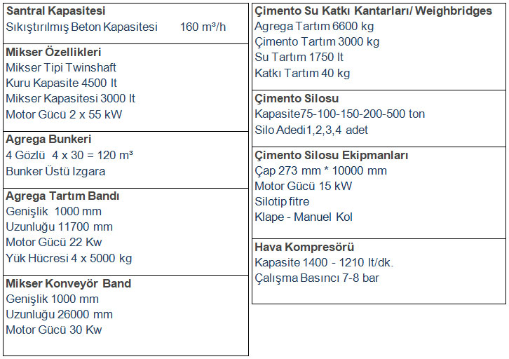 NBS 160-S BETON SANTRALİ TEKNİK ÖZELLİKLERİ